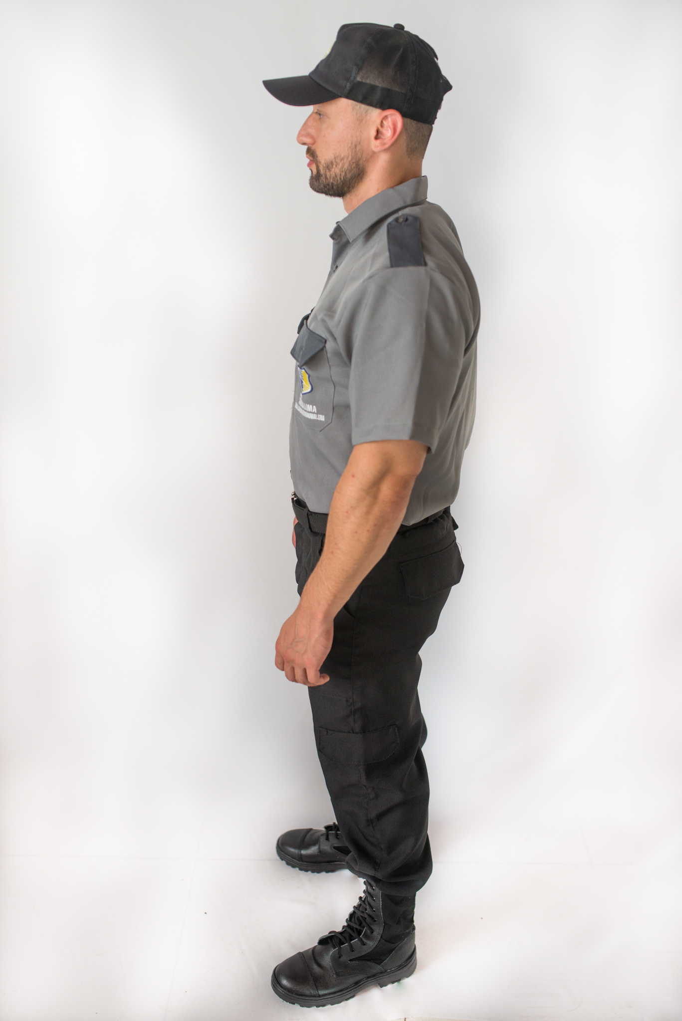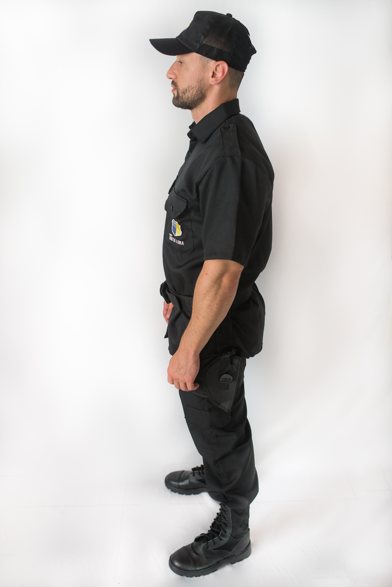 Uniforme operacional, composto por boné personalizado em brim preto com tela de respiro na parte de trás, camisa em oxford modelo vigilante com platina e tampa de bolso, cinto em polipropileno com 1,20cm, calça em oxford modelo operacional/cargo, cos em meio elástico oferecendo maior flexibilidade e melhor caimento para a peça e bota tática.